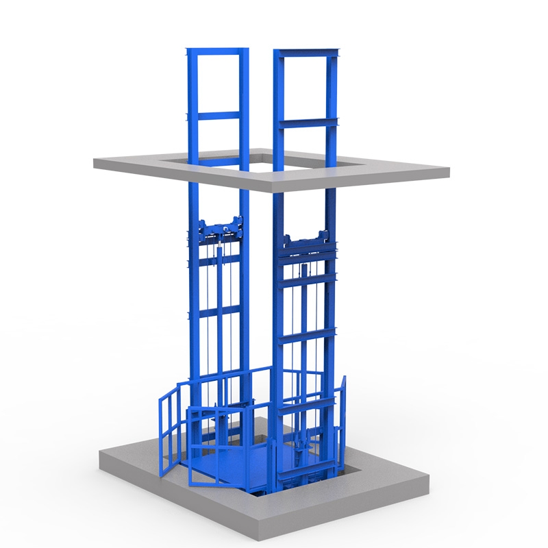 Four-post Cargo Lift is widely used in indoor or outdoor places of the buildings and warehouses to lift goods or pallets between floors.